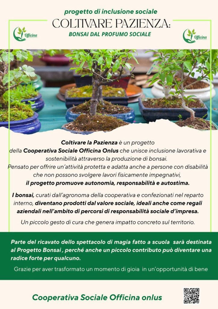 Il Mago Rufus ha regalato ai nostri bambini sorrisi, stupore e occhi pieni di meraviglia. Ma la magia non è finita sul palco. Abbiamo scelto che questo momento di gioia diventasse anche un gesto di solidarietà: parte del ricavato sarà destinato al progetto “Coltivare Pazienza – Bonsai dal profumo sociale”, a sostegno di percorsi di […]